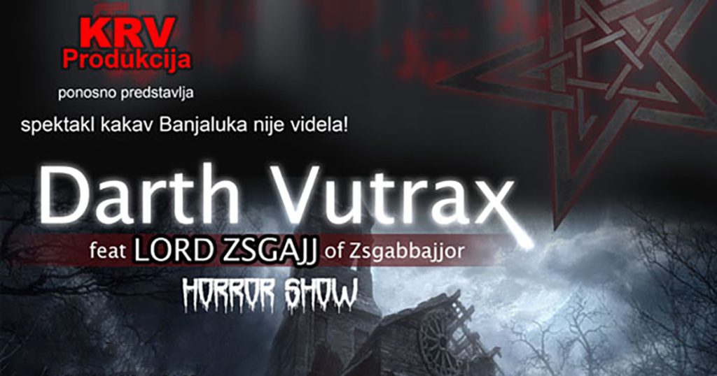 Avantgardni horor umetnik, one-man armageddon DARTH VUTRAX, nastupiće uživo 14. septembra u Studentskom pozorištu u katakombama Gospodske ulice u mističnom gradu na Vrbasu, Banjaluci!